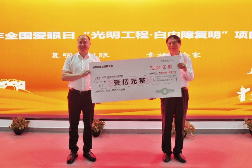 今年愛眼日“光明工程·白內障復明”項目座談會上,愛爾眼科通過愛眼公益基金會捐贈1億元助力鄉村振興